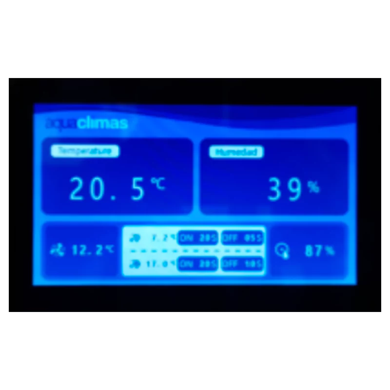 Pantalla táctil de 7” , nos permite controlar temperatura y humedad al mismo tiempo